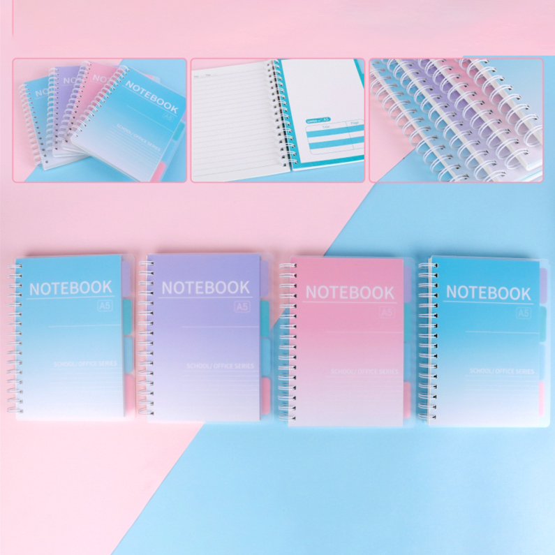 A5 Simple Gradient Color Lined Spiral Notebook, 114 Sheets