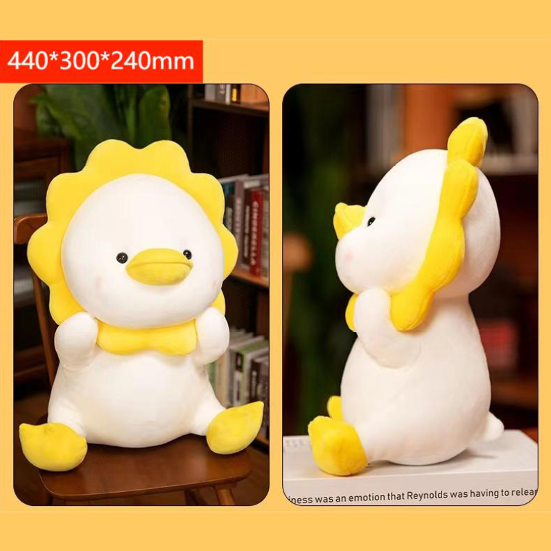 Plush duck doll, decorative cuddle toy.