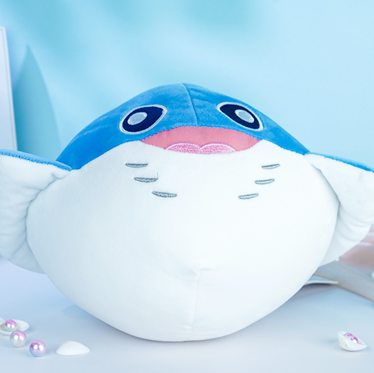 A lovable manta ray plush with a cute smiling face and a soft, huggable body. The smooth stretch cover feels gentle on the skin, making it perfect for cuddling, decorating beds and sofas, or adding a fun touch to photo moments.